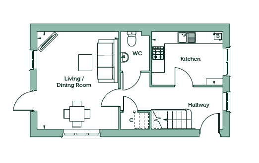 This well‑designed three‑bedroom Shared Ownership home offers modern, energy‑efficient living ideal for today’s buyers. Entering through the front door, a practical hallway provides space for coats and everyday storage. To the front is a contemporary fitted kitchen with sleek units and quality worktops, creating a functional yet stylish space for daily cooking.