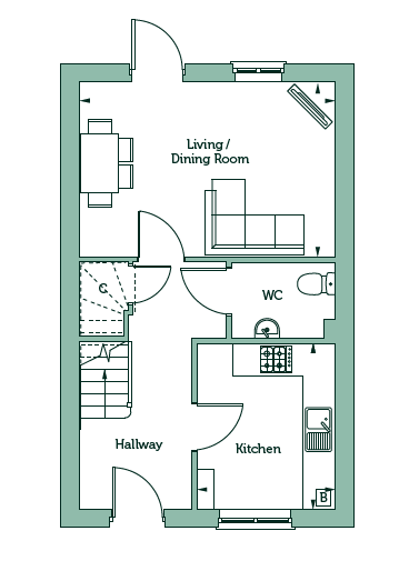 Living / Dining Room - 10'6"max x 15'5" 3.20m x 4.70m Kitchen 8'4" x 10'1" 3.08m x 2.53m