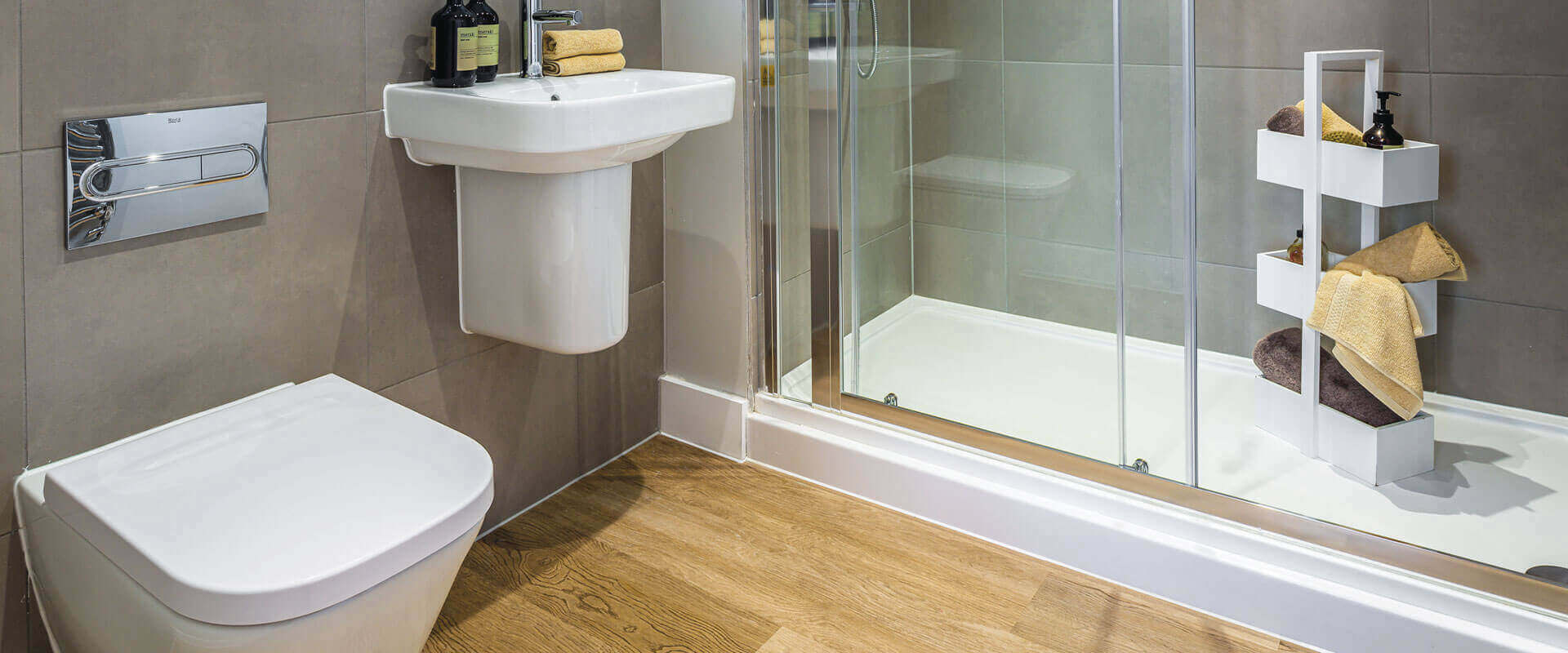 • Steel bath with laminate panel (with thermostatic shower where there's no separate shower)