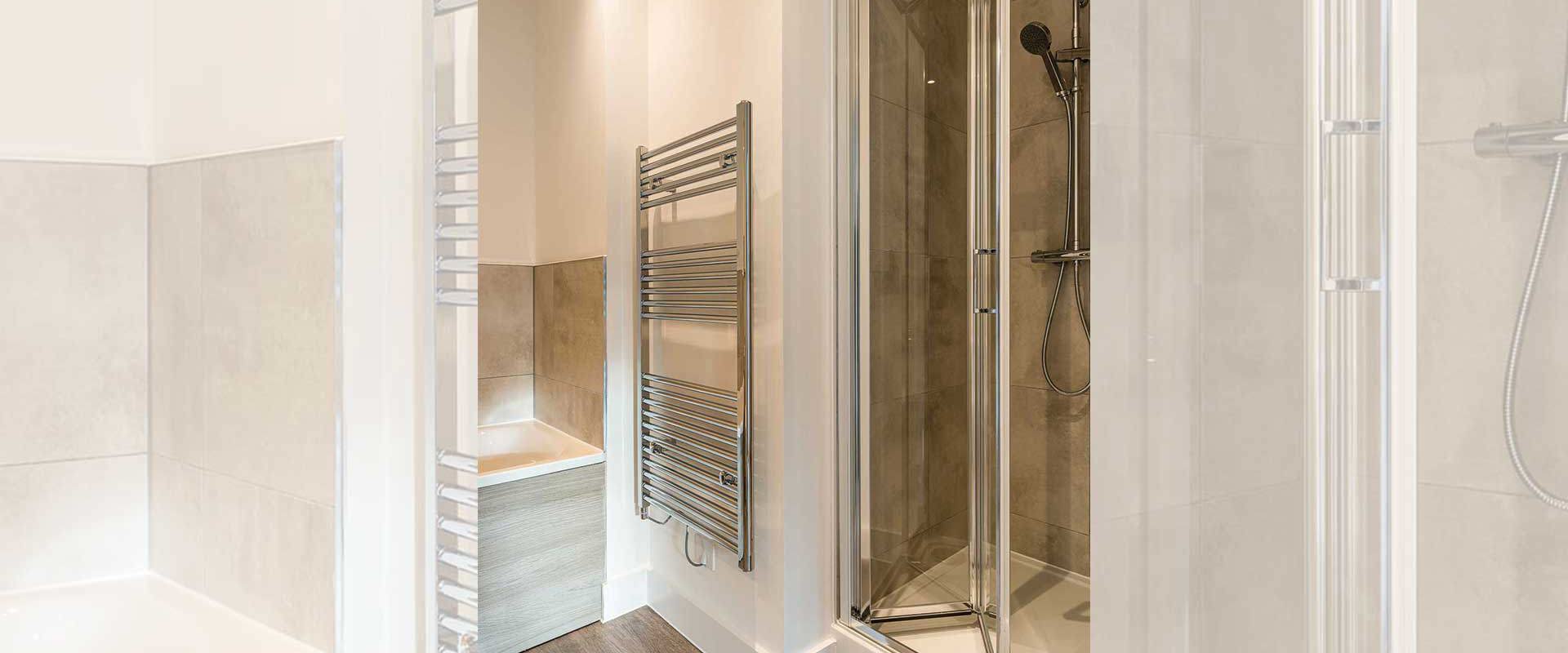 • Full height porcelain wall tiles to bath & shower cubicles