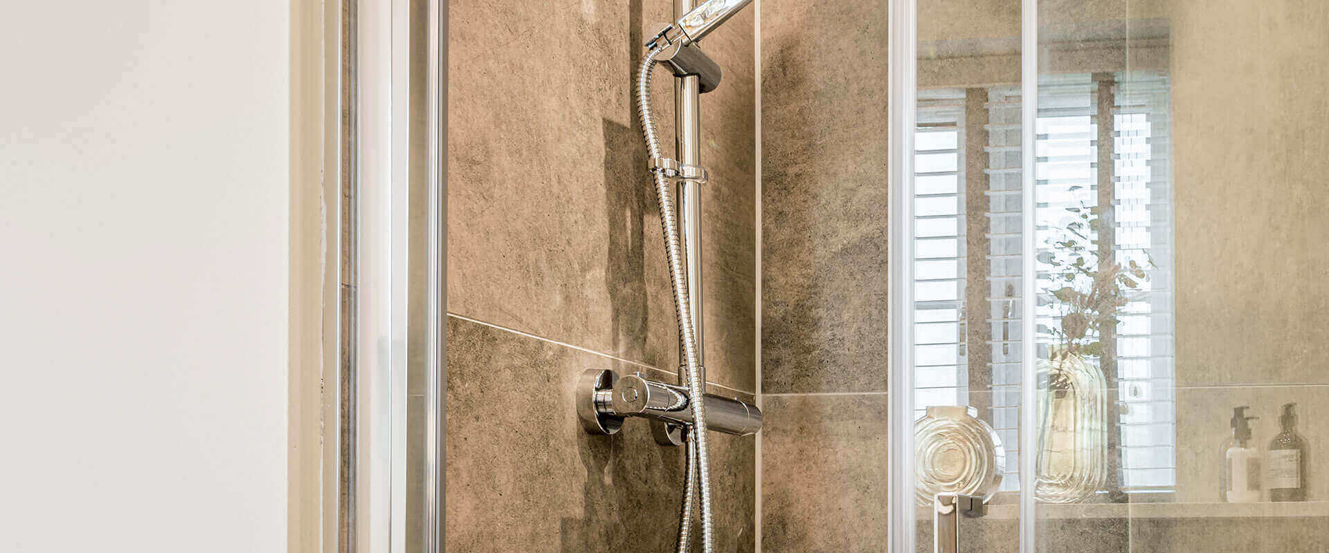 • Separate thermostatically controlled shower cubicle with glass sliding screen (2+ beds)
